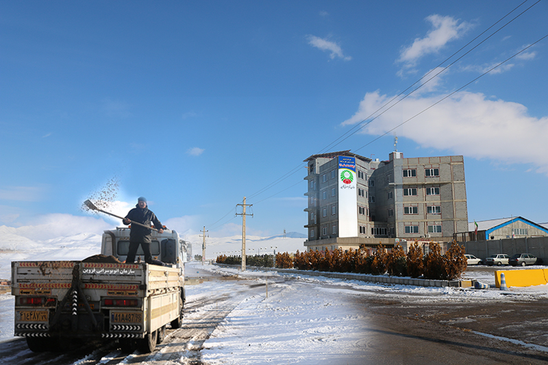 محوطه سازمان اتوبوسرانی در روز بعد از بارش برف