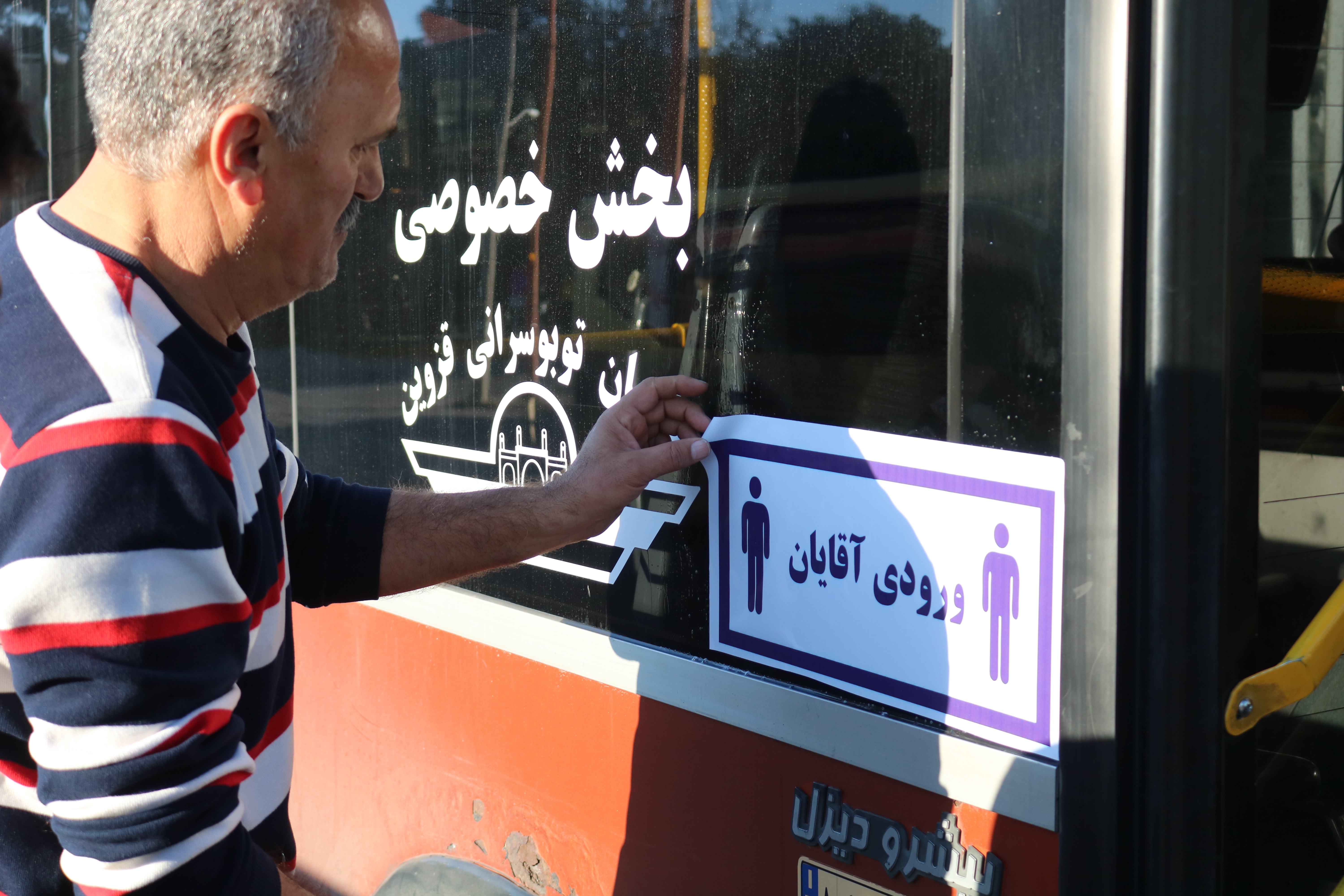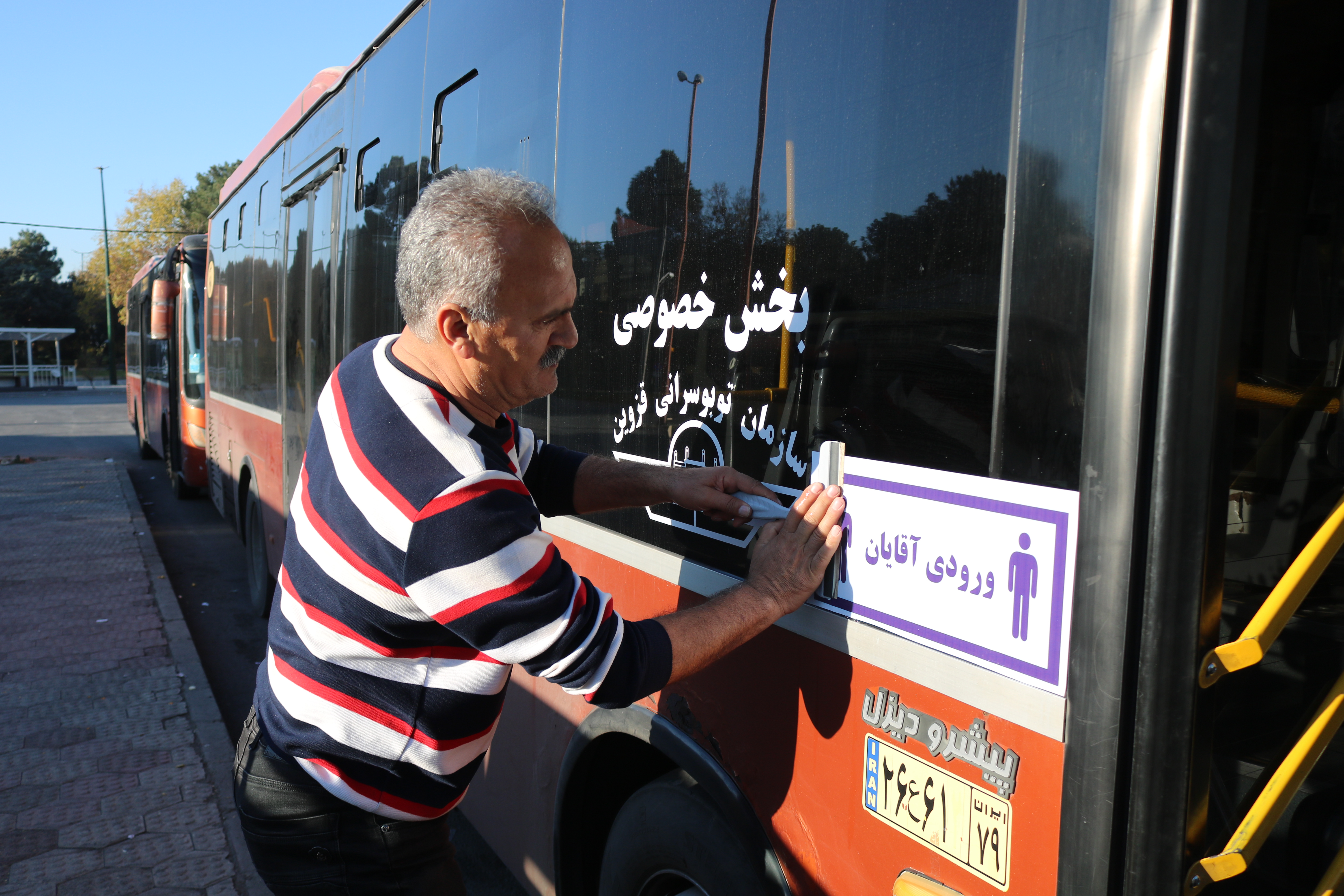 تقوی مدیر عامل سازمان اتوبوسرانی قزوین: در راستای بهبود بهداشت روانی جامعه و بنابر درخواست و انتقاد شهروندان به واحد رسیدگی به شکایات سازمان اتوبوسرانی قزوین برای ممانعت از ورود آقایان به قسمت بانوان و بالعکس، علائم راهنمای ممنوعیت ورود بانوان به آقایان در اتوبوس های شهر قزوین نصب شد.