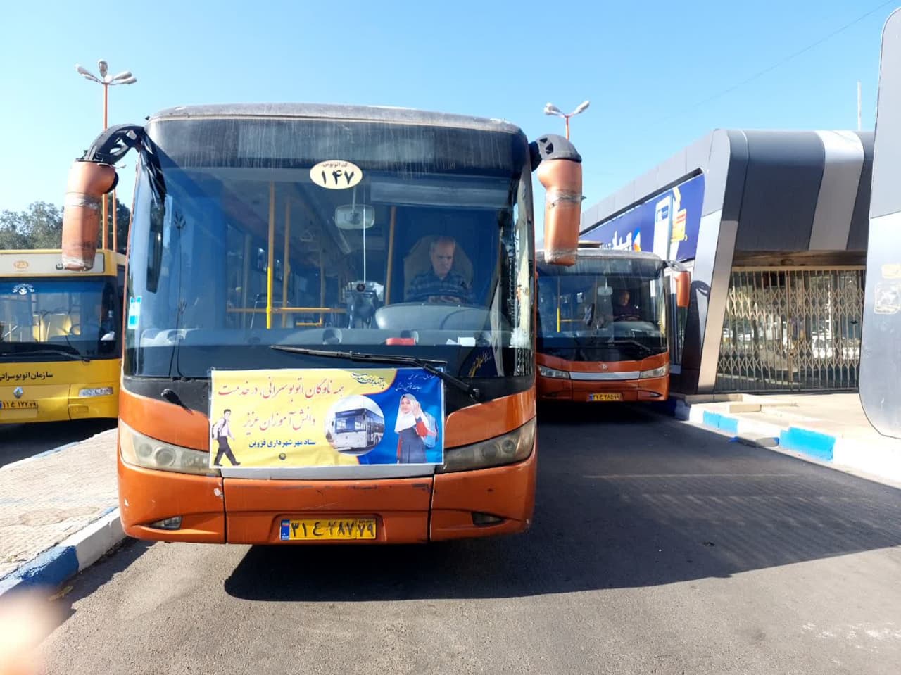 نصب بنرهای آموزش فرهنگ ترافیک در ناوگان اتوبوسرانی قزوین