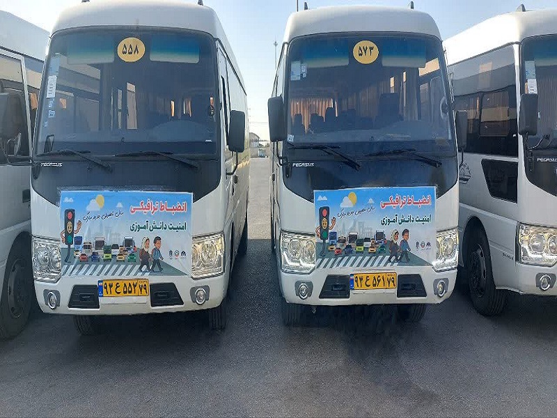 اکران بنر به مناسبت آغاز ماه مهر بر روی اتوبوس های درون شهری قزوین