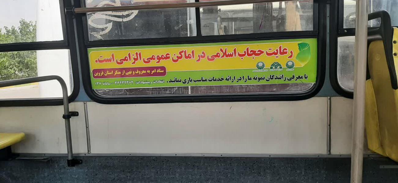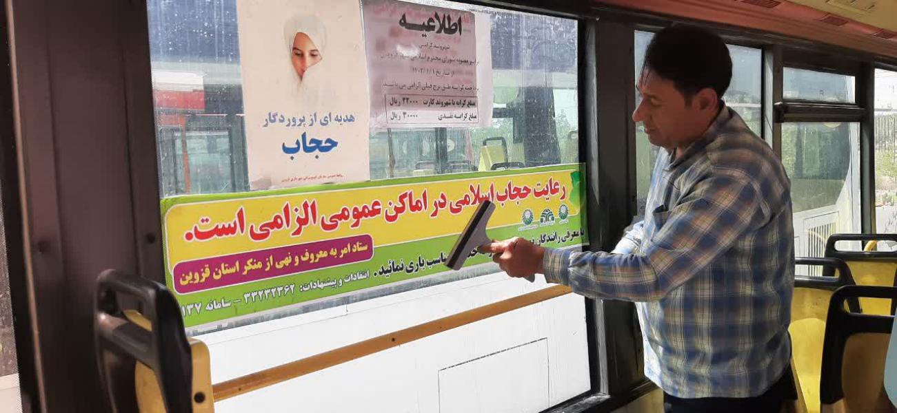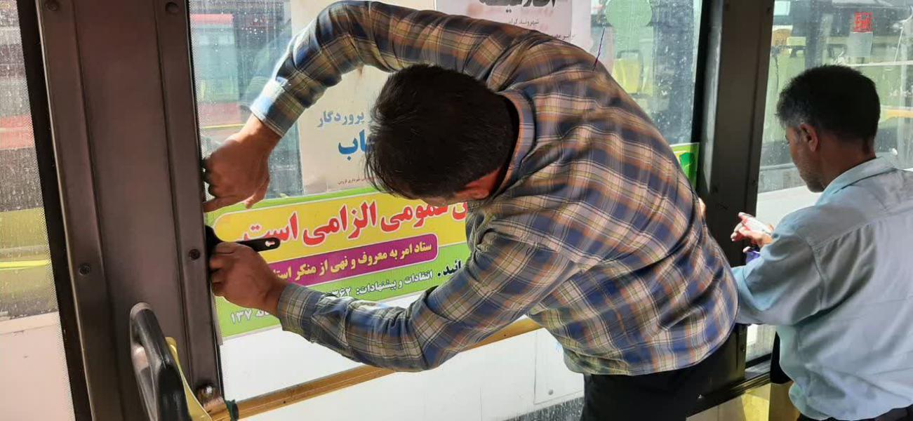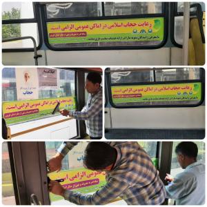 نصب استیکر عفاف و حجاب بر روی اتوبوس های شهر قزوین