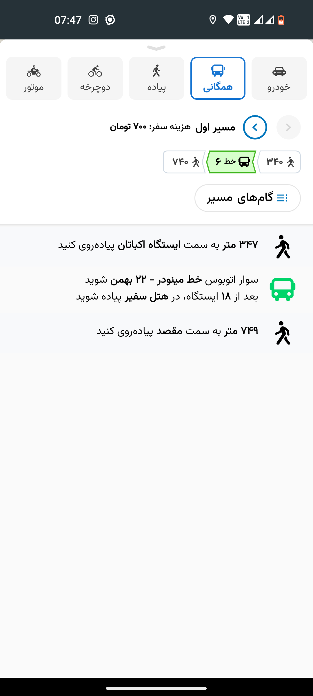 وی در ادامه گفت: برای این منظور کافی است در برنامه نشان پس از انتخاب مبدأ و مقصد سفر خود در قسمت انتخاب نوع وسیله نقلیه بر روی گزینه "همگانی" کلیک کرده تا سفر شما بر اساس مسیر حرکت اتوبوس‌ها؛  مینی‌بوس‌ها یا خودروهای ون سازمان به همراه ذکر ایستگاه مبدأ و مقصد برای شما نمایش داده شود. همچنین برای مشاهده گام‌های مسیر بر روی گزینه مربوطه کلیک کرده و مراحل سفر را مشاهده کنید.